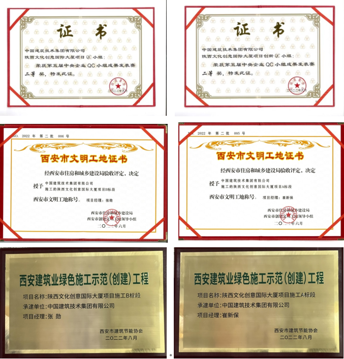此前,陜西文化創(chuàng)意國(guó)際大廈項(xiàng)目QC小組曾在第四屆中央企業(yè)QC小組成果發(fā)表賽中榮獲三等獎(jiǎng)。兩年間,小組成員共計(jì)完成4項(xiàng)課題,并在西安市發(fā)表賽中斬獲一等獎(jiǎng)3項(xiàng)、二等獎(jiǎng)1項(xiàng)。在QC小組驅(qū)動(dòng)下,文創(chuàng)項(xiàng)目也積極評(píng)優(yōu),相繼榮獲“西安市文明工地”“西安建筑業(yè)綠色施工示范工程”等多項(xiàng)獎(jiǎng)項(xiàng)。