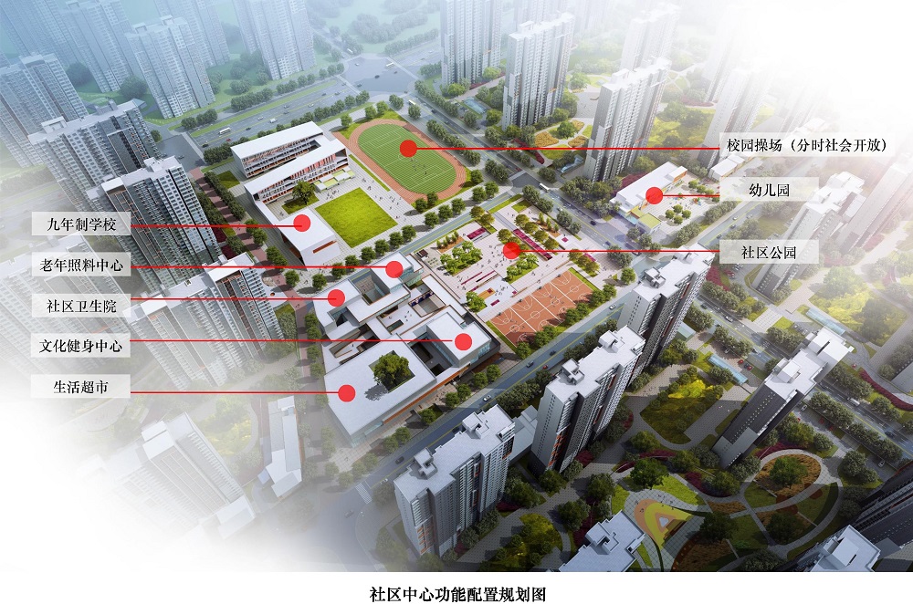 將生活超市、文化娛樂(lè)、全民健身、社區(qū)醫(yī)療、老年照料、九年制學(xué)校、社區(qū)公園、幼兒園和管理服務(wù)等社區(qū)類(lèi)級(jí)的公共設(shè)施相對(duì)集中或鄰近布局,實(shí)現(xiàn)了便利化使用和規(guī)?;?jīng)營(yíng)的雙重目標(biāo)。規(guī)劃同時(shí)兼顧設(shè)施抗擾和共享平衡的問(wèn)題:醫(yī)療、養(yǎng)老相互結(jié)合,教學(xué)設(shè)施相對(duì)獨(dú)立,學(xué)校操場(chǎng)臨近社區(qū)公園和文體中心布置,方便對(duì)外開(kāi)放和聯(lián)動(dòng)使用。
